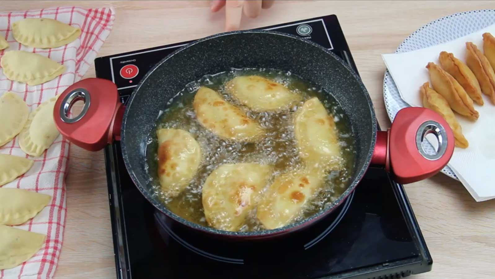 - Τηγανίστε τα καλιτσούνια σε αραβοσιτέλαιο στους 160–170 °C για 1–2 λεπτά από κάθε πλευρά, μέχρι να ροδίσουν.