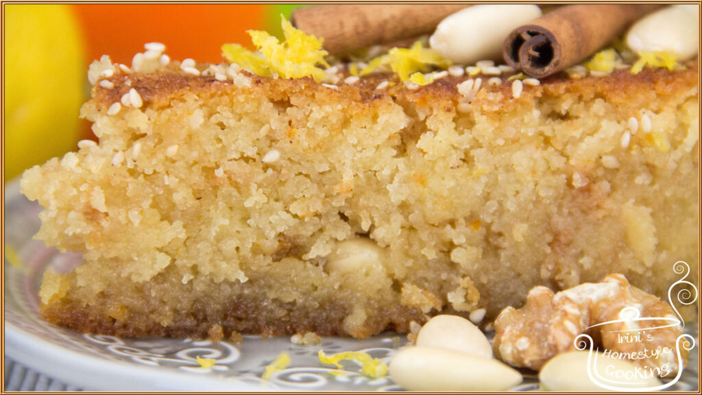 Το σιρόπι μπαίνει στο τέλος, όσο ακόμα ο χαλβάς είναι καυτός, για να τραβήξει σωστά και να σιροπιαστεί μέχρι πάνω. Το αποτέλεσμα είναι μοναδικό: μια υφή που θυμίζει χαλβά αλλά σε πάει και λίγο προς το ραβανί. Οι ξηροί καρποί χαρίζουν τραγανότητα, η κανέλα δίνει ζεστασιά και τα εσπεριδοειδή φρεσκάδα – όλα μαζί κάνουν αυτό το ταπεινό γλυκό πραγματικά θεϊκό!