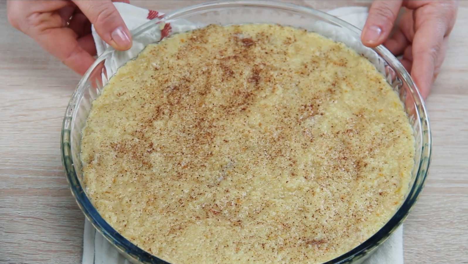 - Σε μια ταρτιέρα 25 εκ. διάμετρο βάλτε το χυλό, πασπαλίστε με κανέλα σουσάμι και ψήστε σε προθερμασμένο φούρνο, στις αντιστάσεις, στη μεσαία θέση στους 180 βαθμούς Κελσίου για 45-50 λεπτά.