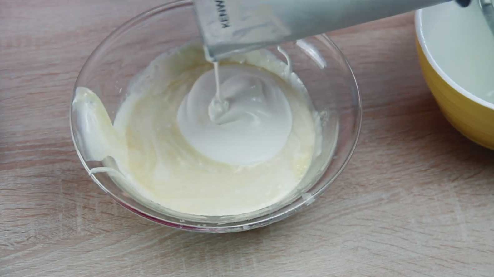 Ρίξτε την υπόλοιπη μαρέγκα σε μικρές δόσεις, ανακατεύοντας απαλά για να μη χαθεί ο όγκος της.