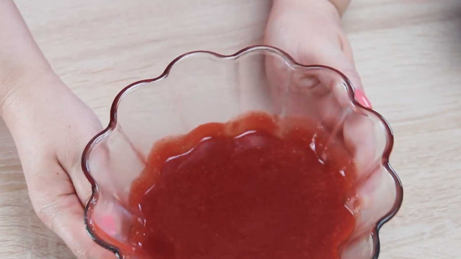 Ρίξτε από πάνω τη σως φράουλας και ξαναβάλτε το στο ψυγείο.