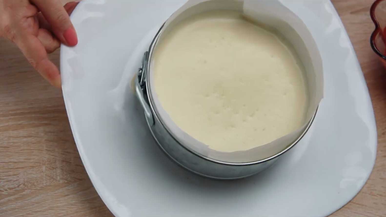 Σε ένα τσέρκι 28 εκ. βάλτε πρώτα το ένα παντεσπάνι και από πάνω τη μισή κρέμα. Τοποθετήστε το γλυκό στο ψυγείο να σφίξει.