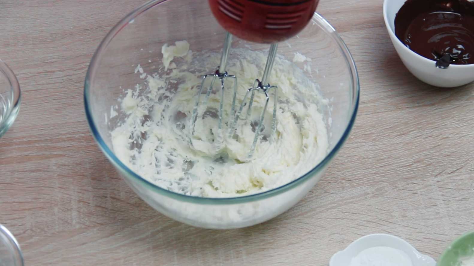 Χτυπήστε το βούτυρο με την άχνη ζάχαρη μέχρι να αφρατέψει.