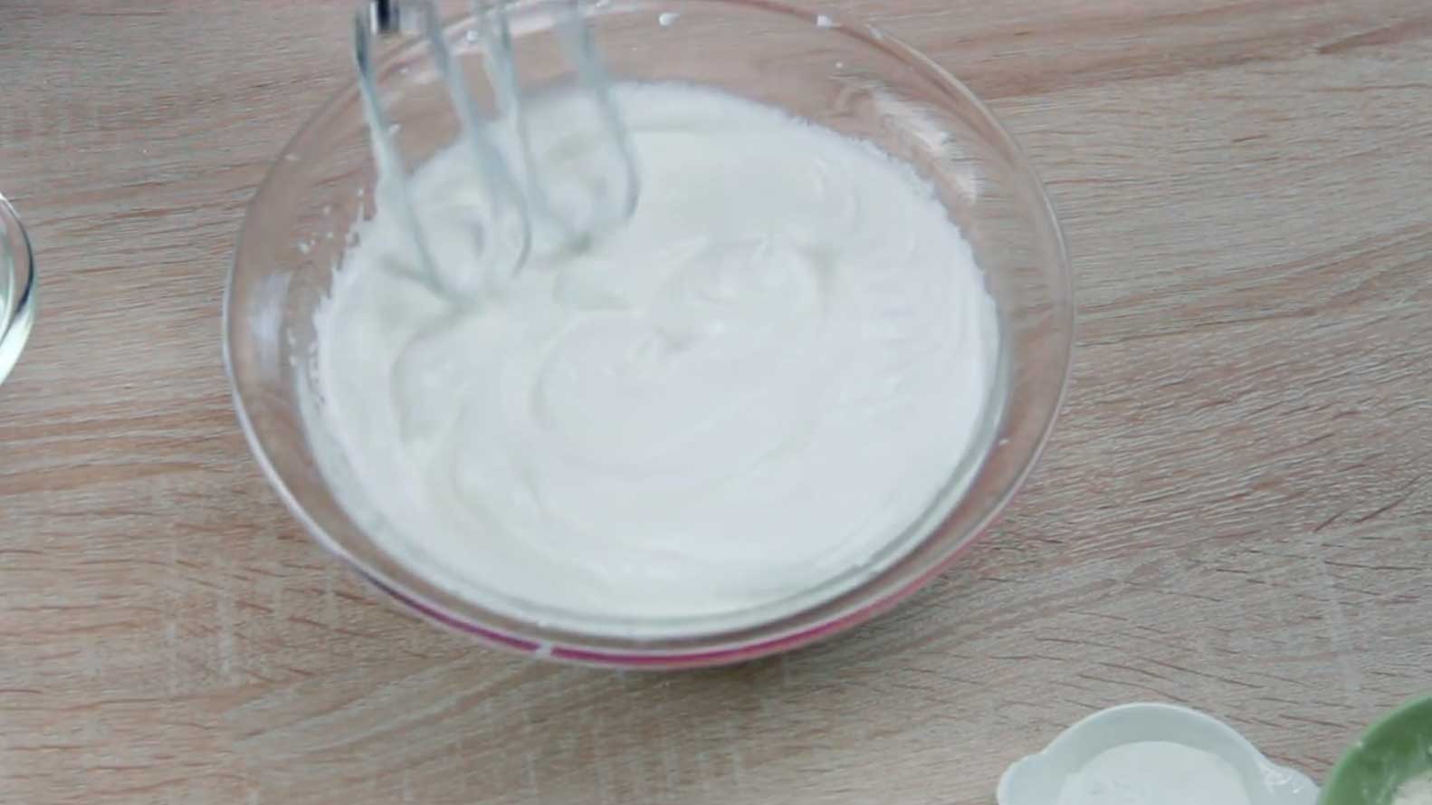 Χτυπήστε τα ασπράδια με λίγο αλάτι μέχρι να αρχίσουν να αφρατεύουν και στη συνέχεια προσθέστε σταδιακά την κρυσταλλική ζάχαρη. Συνεχίστε το χτύπημα δυνατά μέχρι να σφίξει καλά η μαρέγκα και να σχηματίζει κορυφές.