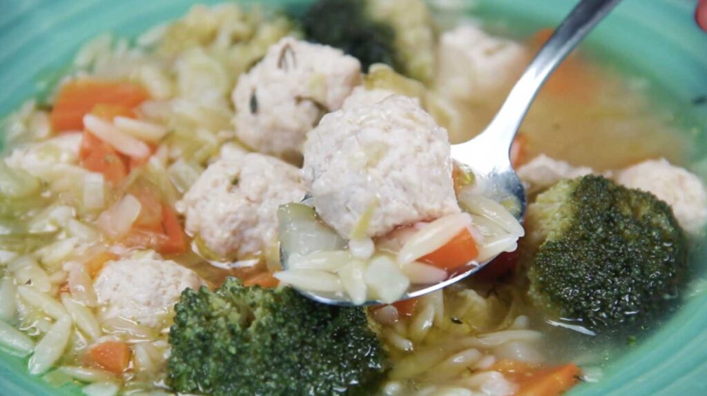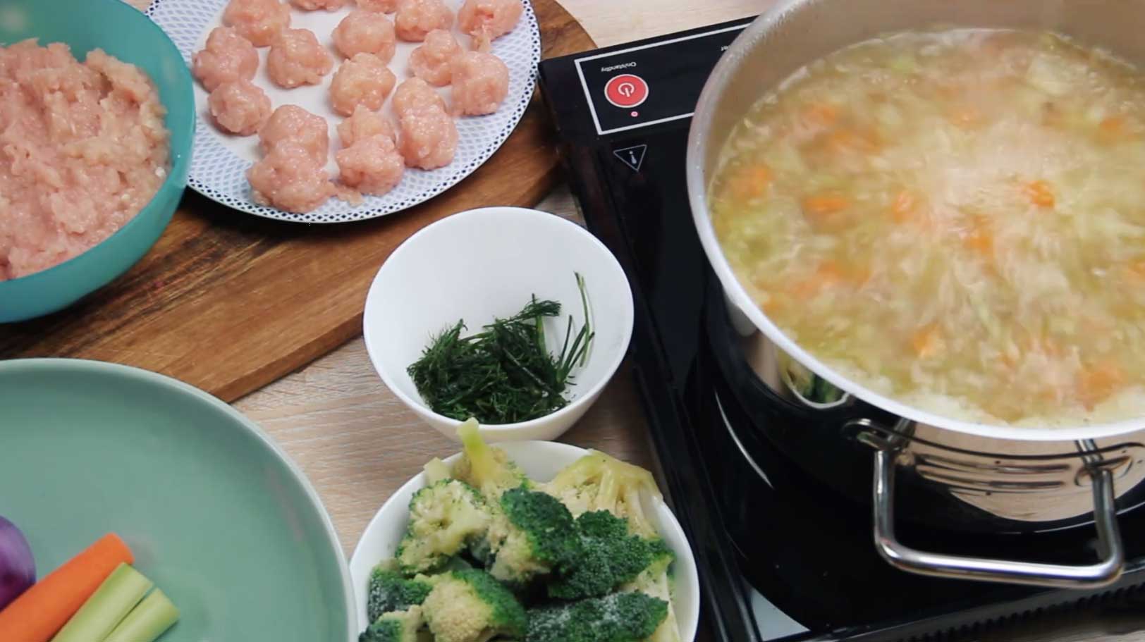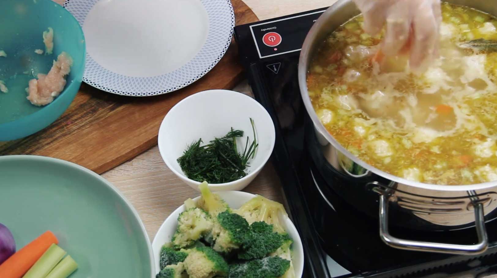 - Πλάστε το κιμά σε μικρά μπαλάκια. Μόλις βράσει η σούπα ρίξτε τα μπαλάκια κοτόπουλου, άνηθο ψιλοκομμένο και βράστε για 20 λεπτά.
